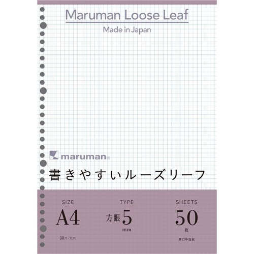 書きやすいルーズリーフA4 5mm方眼罫 50枚