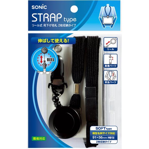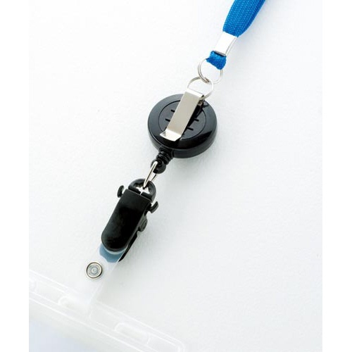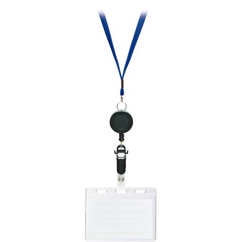 リール式吊下げ名札 2枚収納タイプ 青