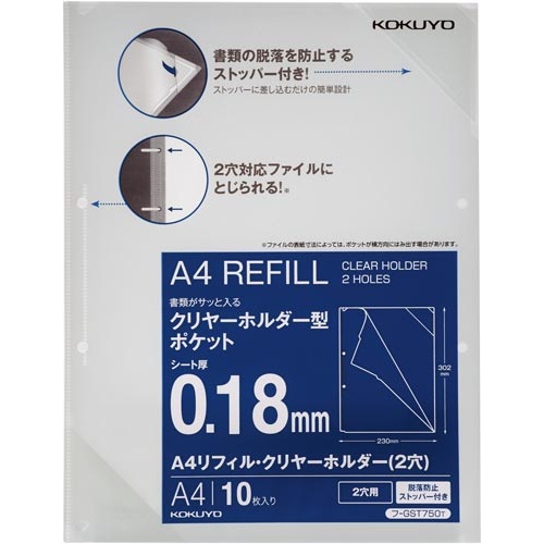 A4リフィル クリヤーホルダー2穴脱落防止100枚