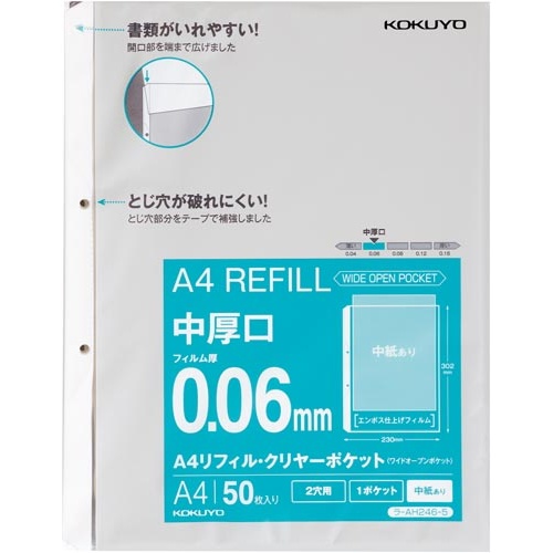 A4リフィルワイドオープン2穴中厚中紙50枚×10