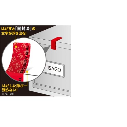 | 注意事項 | ※紙・皮革・布・軟質塩化ビニル・ナイロン・木材などにはご使用いただけません。 ※紙や曲面・凹凸面など貼る面の材質や形状によって、剥がしたときに文字が浮き出ない場合があります。 ※この商品は、その利用により、いかなる漏洩・改ざんも防止することを保証するものではありません。 ※【返品に関するご注意】開封後はお客様のご都合による返品はお受けできません。 以下の点にご注意ください