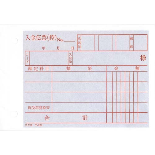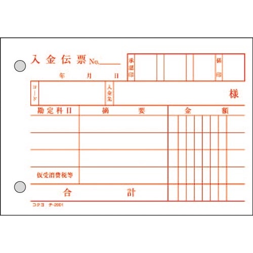 入金伝票 B7ヨコ型50組 バックカーボン×5