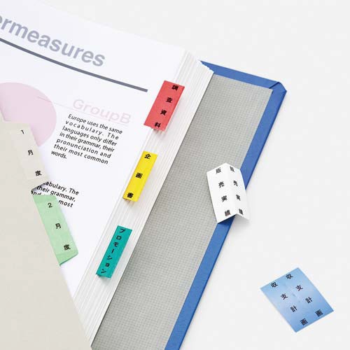 2. テプラPROテープ インデックス青ラベル黒文字5個