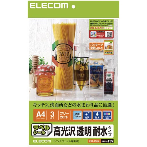フリーカットラベル 耐水光沢透明 A4 3枚