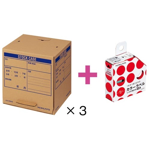文書保存箱(閲覧用) 3個入+カラーラベル赤1個