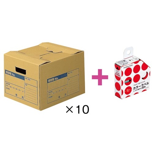 文書保存箱A4用 フタ差込式10個+カラーラベル赤