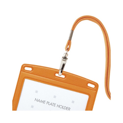 吊り下げ名札 レザー調 ヨコ名刺 橙