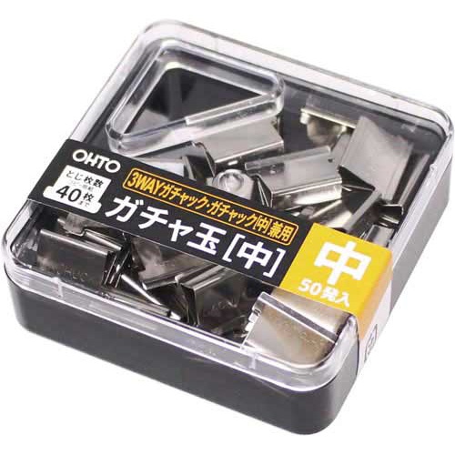 | 注意事項 | ※【3WAYガチャック】専用のガチャ玉です。ガチャック本体(大)及び(小)サイズには、ご使用いただけません。 ※表示とじ枚数以上の書類をとじた場合、クリップが開いたままの状態になり再利用できなくなる事があります。また、開いたままの状態になったガチャ玉は、ガチャック本体には入れないで下さい。玉詰まりの原因になります。 以下の点にご注意ください