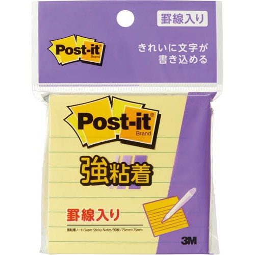 ポストイット 強粘着 75×75 罫線入 イエロー