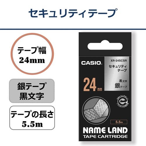 2. ネームランド セキュリティテープ 24mm 黒文字