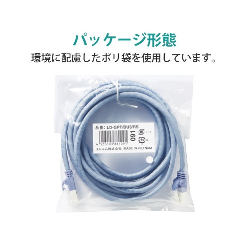 LANケーブル カテ6 ブルー 3m