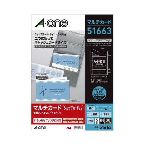 2. クリアエッジ名刺 ヨコ2つ折 兼用 5面 100枚