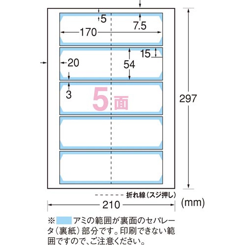 クリアエッジ名刺 ヨコ2つ折 兼用 5面 100枚
