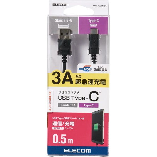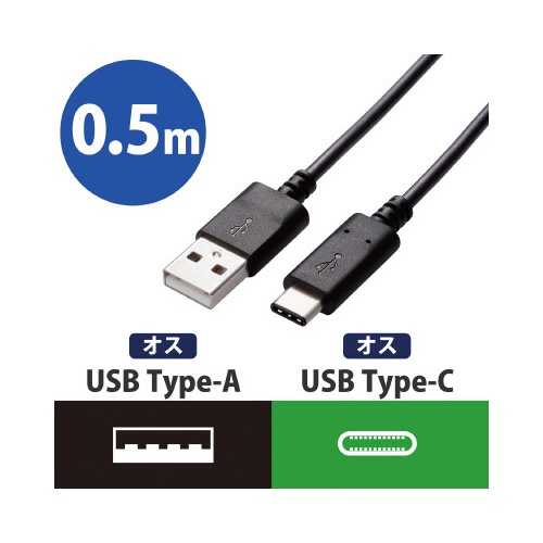 2. USB2.0ケーブル(A−C) 0.5mブラック