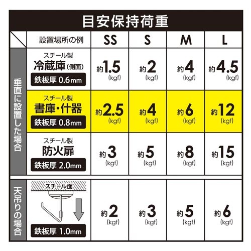 マグネットフックゼロスライドL黒12kg 5個
