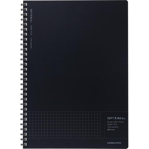 ソフトリングノートBiz方眼罫 40枚 B5黒×5