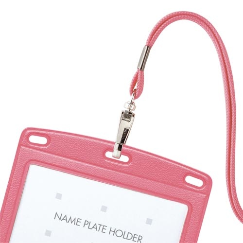 吊り下げ名札 レザー調 ヨコ名刺 桃