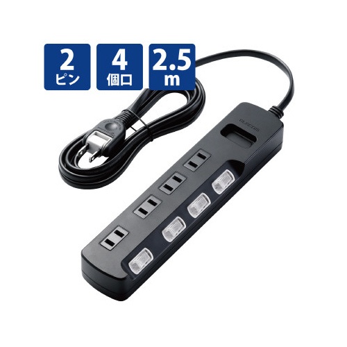 雷ガードタップ個別スイッチ4個口2.5m ブラック