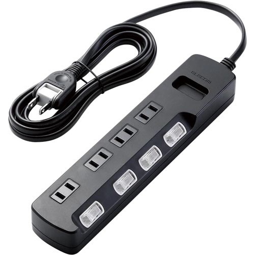 2. 雷ガードタップ個別スイッチ4個口2.5m ブラック
