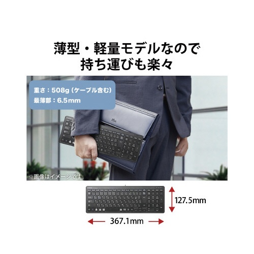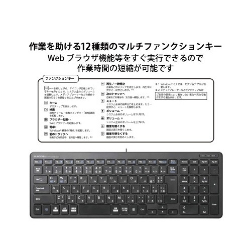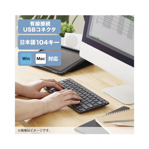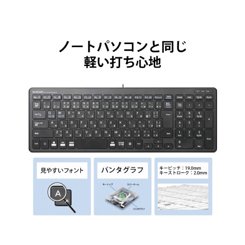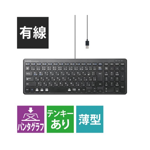 有線コンパクトキーボードパンタグラフ式薄型ブラック