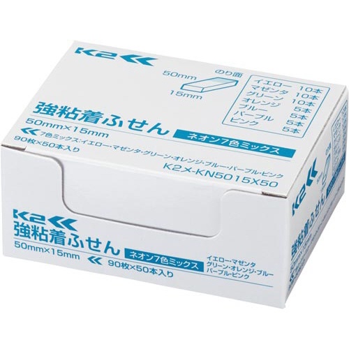 強粘着ふせん K2 50×15 ネオン混色50冊