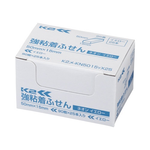 強粘着ふせん K2 50×15 ネオン黄色25冊