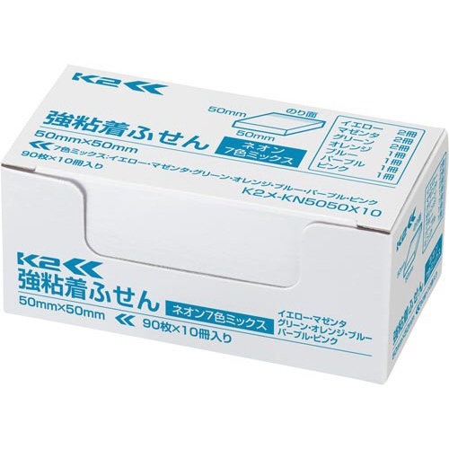 強粘着ふせん K2 50×50 ネオン混色10冊
