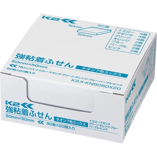 強粘着ふせん K2 50×50 ネオン混色20冊