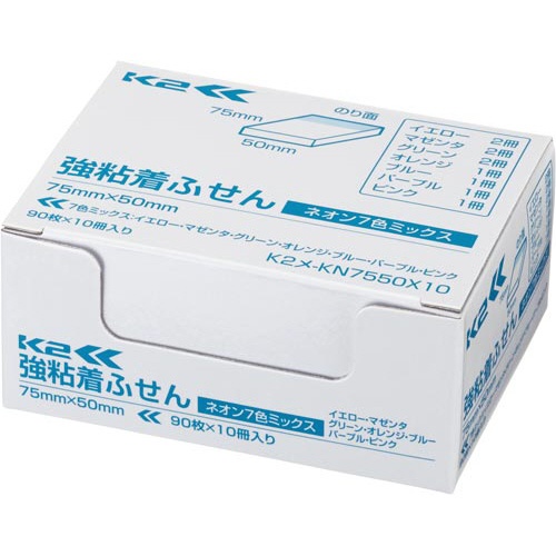 強粘着ふせん K2 75×50 ネオン混色10冊
