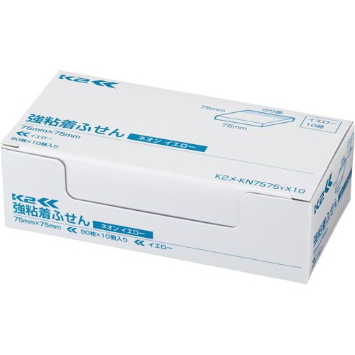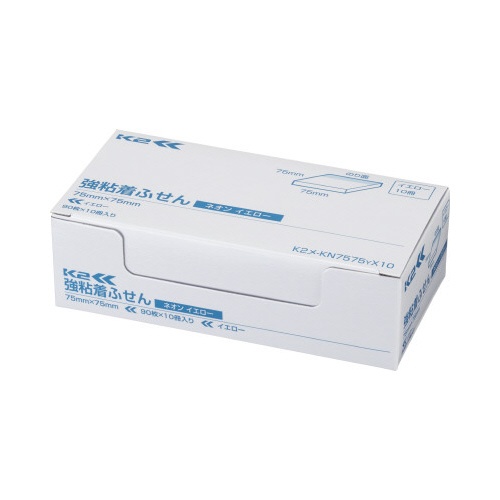 強粘着ふせん K2 75×75 ネオン黄色10冊
