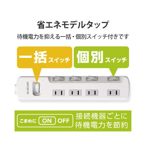 省エネタップ 一括&個別スイッチ 4個口 2m