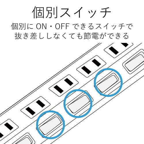 雷ガードタップ 個別 4個口 2.5m ホワイト