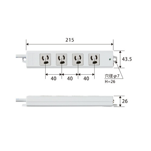 工事用抜け止めタップ 3P 4個口 1m グレー