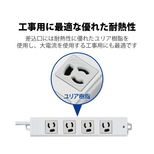 2. 工事用抜け止めタップ 3P 4個口 1m グレー