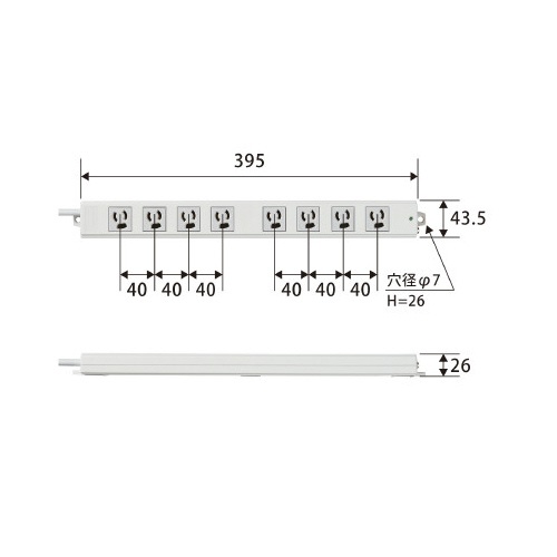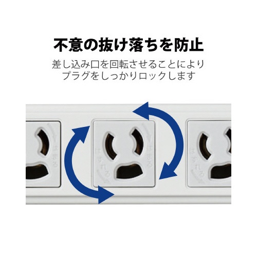 2. 抜け止めOAタップ 3P 8個口 1m グレー