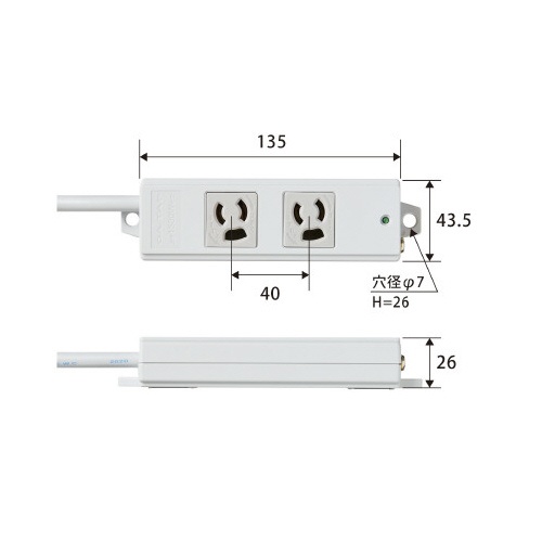 2. 抜け止めOAタップ 3P 2個口 5m グレー