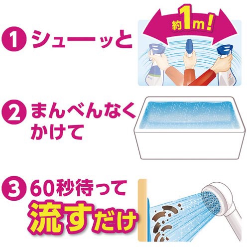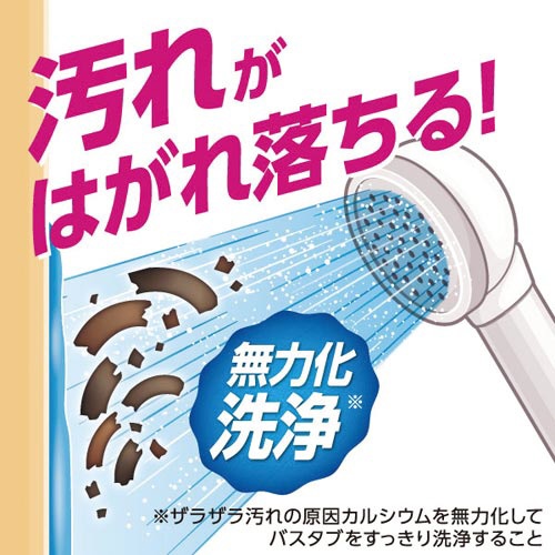 | 注意事項 | ※用途以外に使わない ※乳幼児の手の届く所に置かない ※認知症の方などの誤飲を防ぐため、置き場所に注意する ※目より高い所はスポンジや布につけて洗う ※換気をよくして使う ※荒れ性の方や長時間使用する場合は炊事用手袋を使う ※使用後は手を水でよく洗う ※タイル目地は着色することがあるので、目立たない所で確認する ※一部の浴そう、床、壁、塗装面では着色することがあるので、洗剤をかけて10分以上放置しない ※色がついた時は、浴室用洗剤でクレンザーでこするか、カビ取り剤で洗う 以下の点にご注意ください