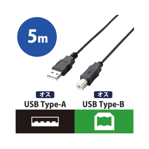 エコUSB2.0ケーブル A−B 5m BK