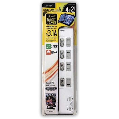 OAタップ(AC×4)ホワイト USB2ポート付き