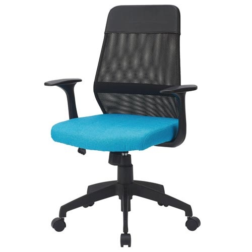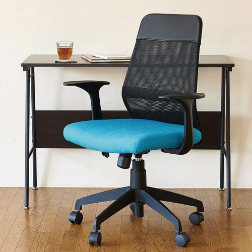 ミドルバックメッシュチェア 肘付 ブルー