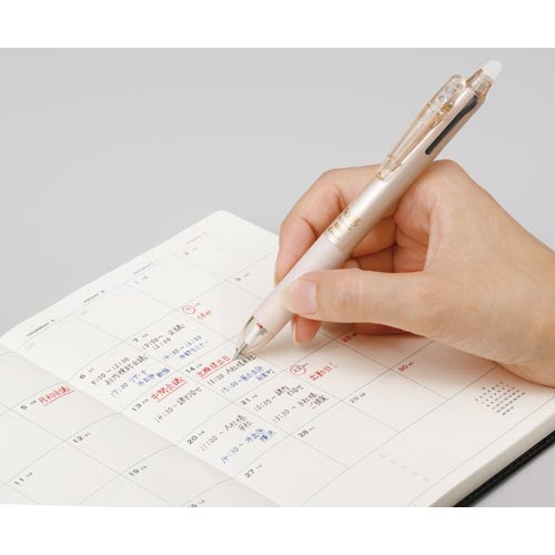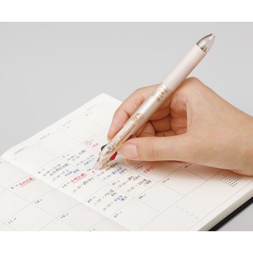 | 注意事項 | ※専用ラバーでこすると色が消えます。 ※証書類・宛名など消えてはいけないものには使用しないでください。 ※直射日光の当たる場所や、高温になる場所に置かないでください。60℃以上になるとインキが無色になります。 ※−10℃前後になると消去した筆跡が戻る場合があります。 ※紙以外への筆記には使用しないでください。 ※感熱紙など紙の種類や、印刷物の特性によっては消去に不向きな場合があります。 ※消去用ラバーに汚れがついたまま擦ると、紙面が汚れます。ふき取るなど汚れを落としてからお使いください。 以下の点にご注意ください