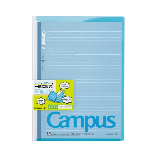 2. キャンパスカバーノートプリント収容ポケット付A4青