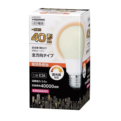 2. LED一般電球形 E26 40W 電球色 調光対応