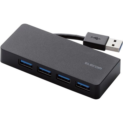 USBハブ3.0ケーブル収納 バスパワー4ポート黒