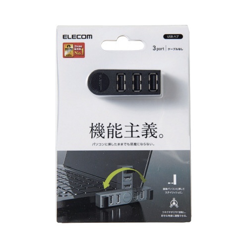 USBハブ 2.0バスパワー 3ポート 直挿し 黒