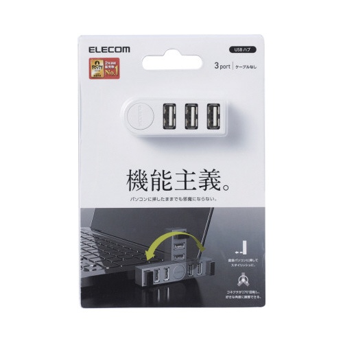 USBハブ 2.0バスパワー 3ポート 直挿し 白