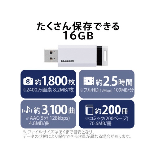 2. USB3.1メモリー ノック式 16GB ホワイト