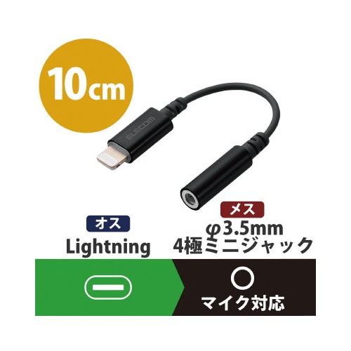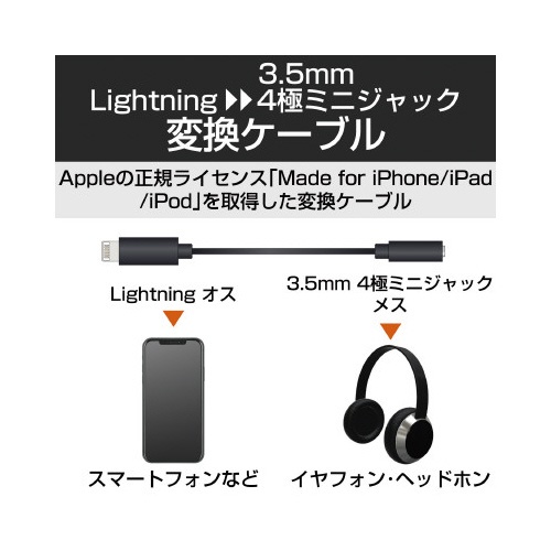 2. Lightning−4極イヤホン端子変換ケーブル黒
