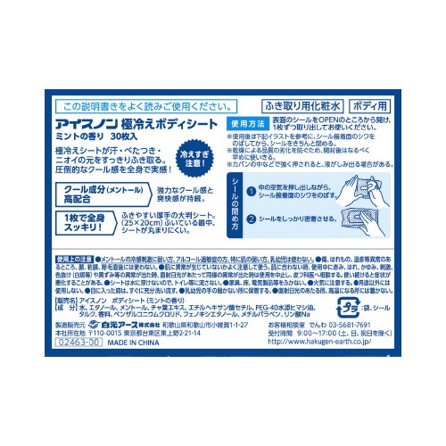 注意事項 | ※メントールの冷涼感に弱い方、アルコール過敏症の方、特に肌の弱い方、乳幼児は使わない。 ※【返品に関するご注意】開封後はお客様のご都合による返品はお受けできません。 以下の点にご注意ください