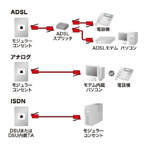 | 注意事項 | ※NTT端子結線準拠でない6極4芯の機器には使用できません。 ※【返品に関するご注意】開封後はお客様のご都合による返品はお受けできません。 以下の点にご注意ください